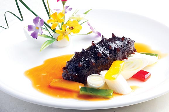 5、由于如意海參要經(jīng)過(guò)包蒸改刀裝盤澆汁等工序,所以要輕拿輕放,以防把如意海參弄撒,影響成菜的美觀。
